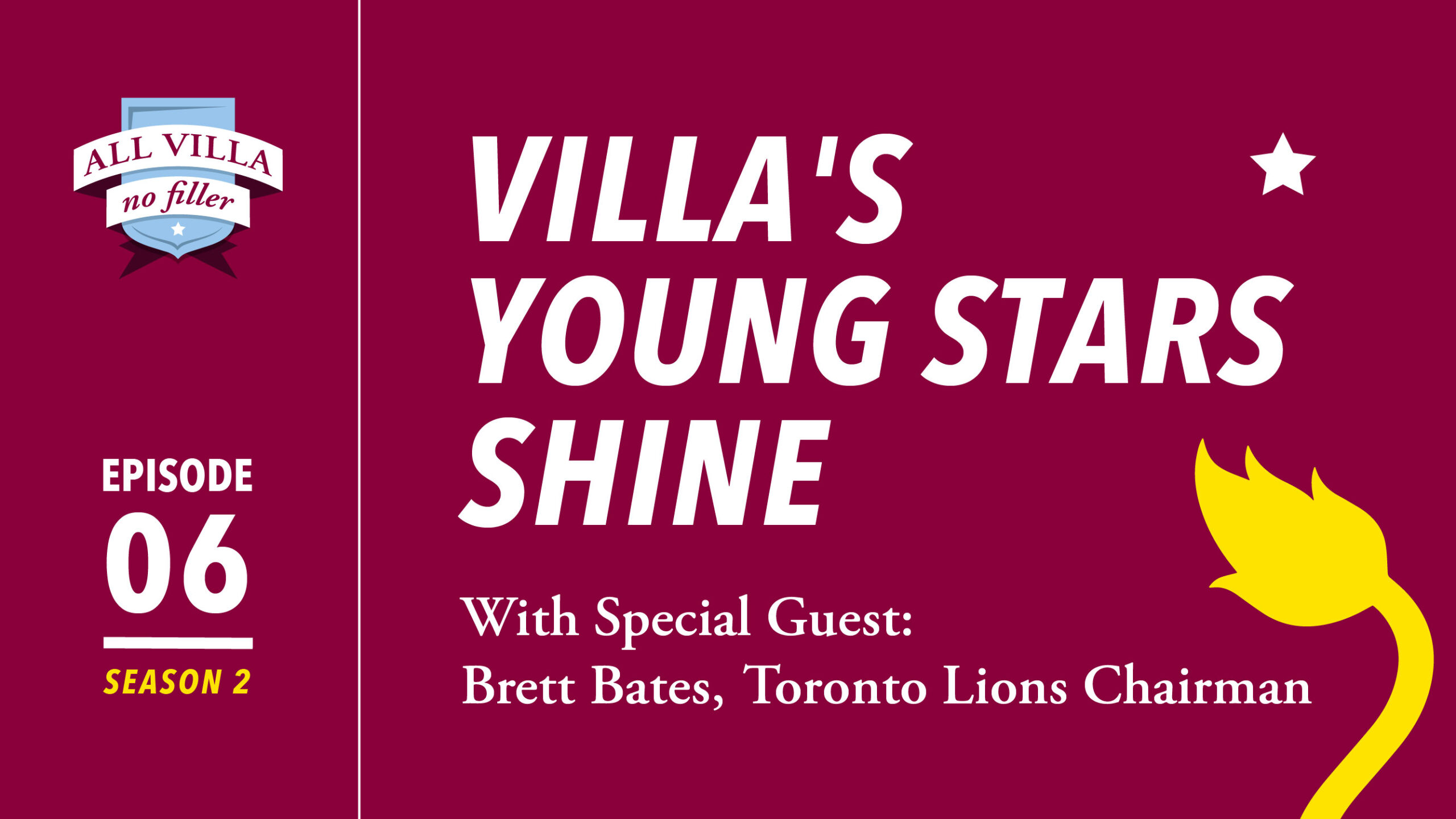 Regular host Frankie is joined this week by Toronto Lions Chairman and lifelong Villan, Brett Bates. The two react to Villa’s 6-0 win over Barrow in the League Cup where some of the club’s galaxy of young stars shone brightly, notably Cameron Archer with an impressive hat-trick.
